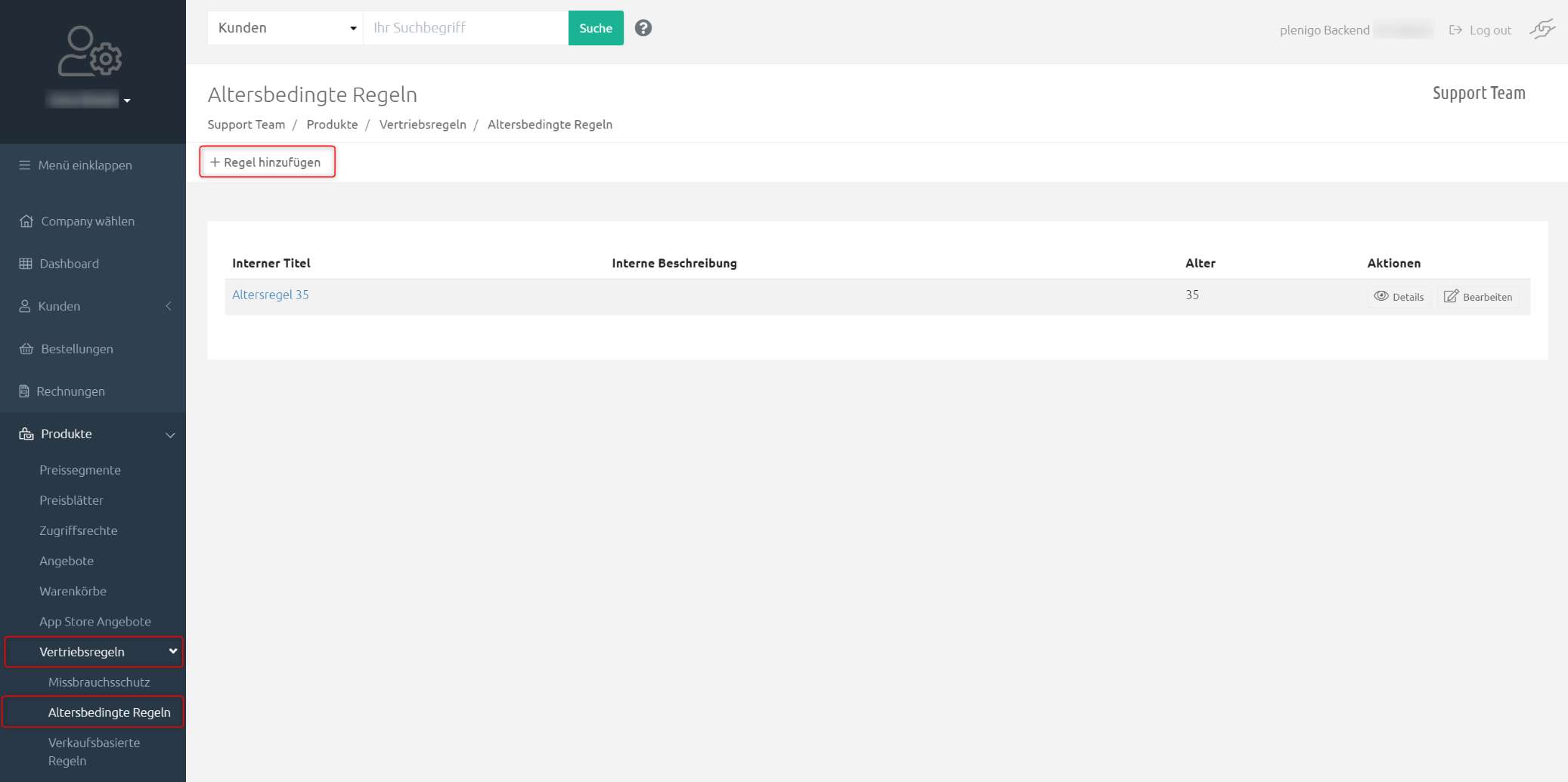 Um eine neue Altersbedingte Regel festzulegen klicke bitte auf den Button "Regel hinzufügen".