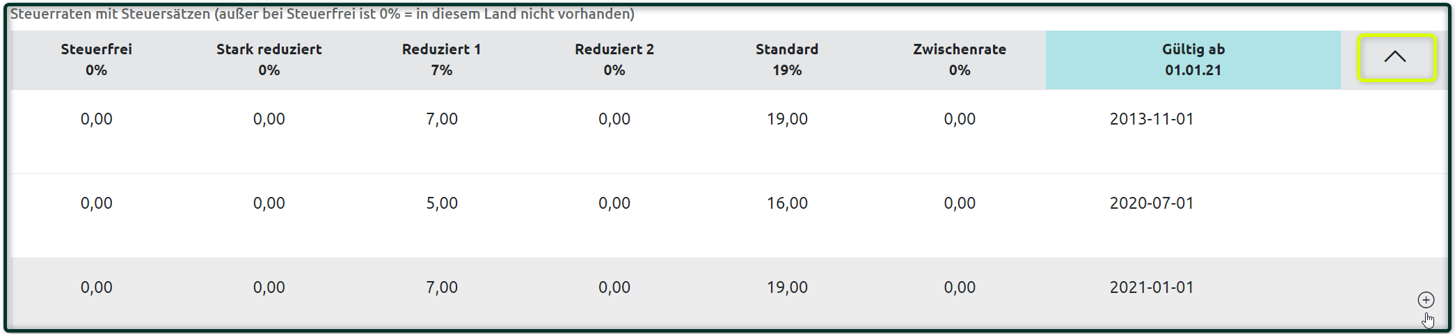 • + anklicken, um neue Steuersätze hinzuzufügen.