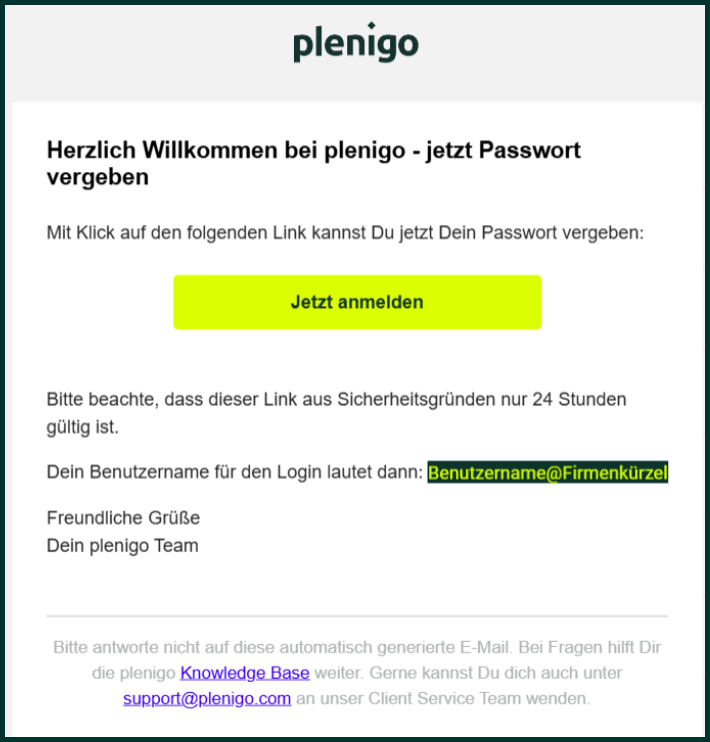 Wenn ein neuer Benutzer im Vertragsunternehmen erstellt wurde und eine E-Mail-Adresse hinterlegt wurde, hat dieser ebenso eine E-Mail mit seinem Benutzernamen erhalten.