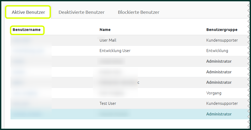 Im Merchant Backend im Vertragsunternehmen können die Benutzernamen aller Benutzer eingesehen werden.