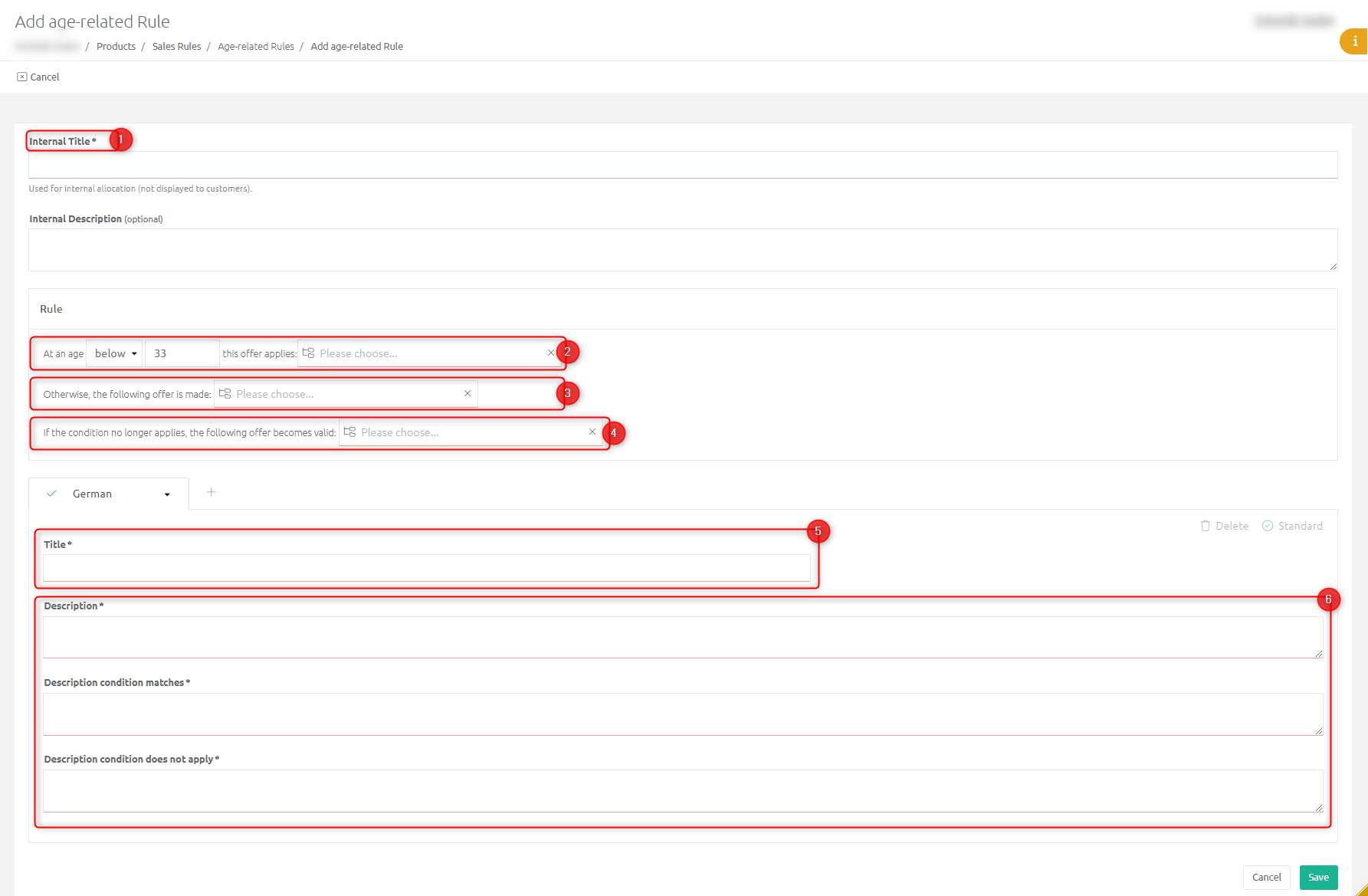 (1) Internal title: Here you define which title will be displayed in the overview of age-related rules. Optionally you can add an "Internal description".