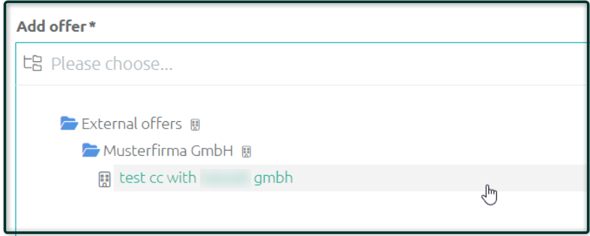 Add offer*. Use the drop-down menu to add as many offers as you like to the shopping cart. Cross-Client offers can also be used. They are marked in blue color.